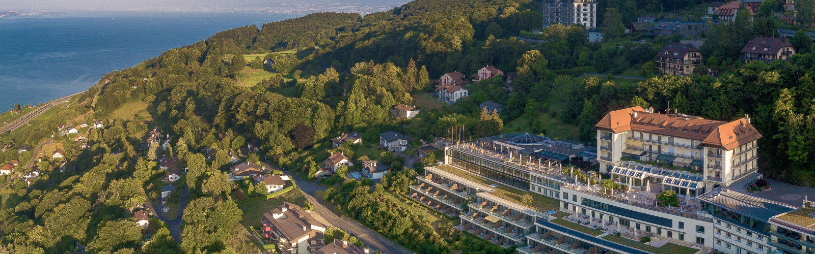 Located in Mont Pèlerin on vineyard rich foot hills between Lausanne and Montreux, among the verdant Chardonne grape vineyards and wooded paths on Lake Geneva’s shore. With glorious surrounding countryside, the hotel is still easily accessible from Geneva and Lausanne, Bern train station or by cable car or limo up from Vevey.